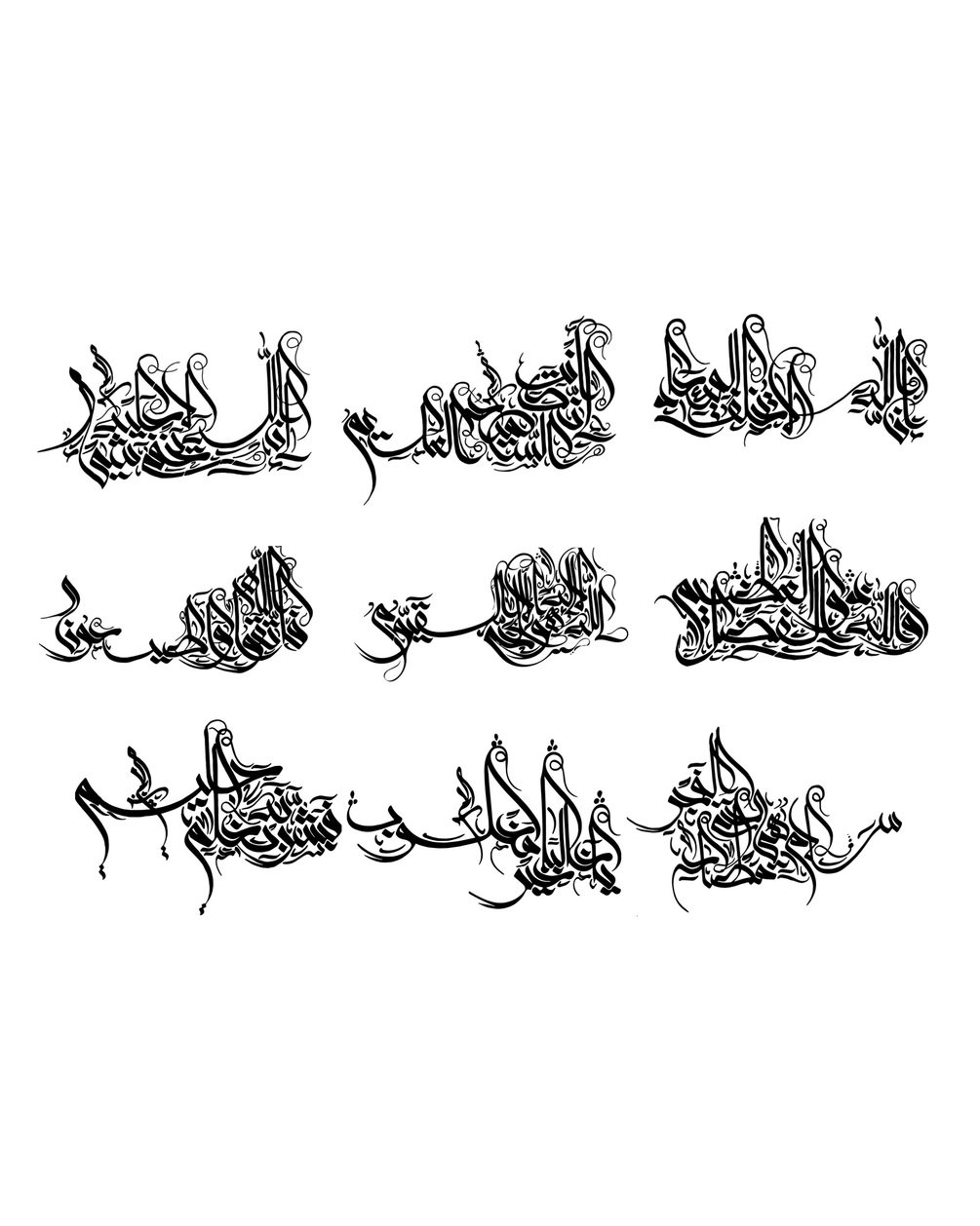 ثلاثة و عشرون تصميما إسلاميا أسود على خلفية بيضاء